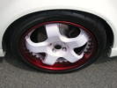 アルミホイールのワンオフ塗装です。 リム部キャンディレッド、プラズマティク塗装(フレーク) ディスク部 ベースホワイトにレッドパールです |